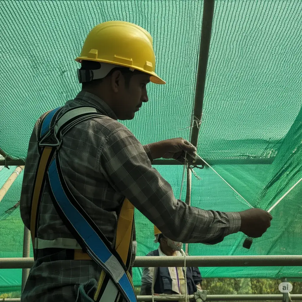 Green Safety Net is strong and durable netting, providing safety and fall protection in construction sites, gardens and buildings.